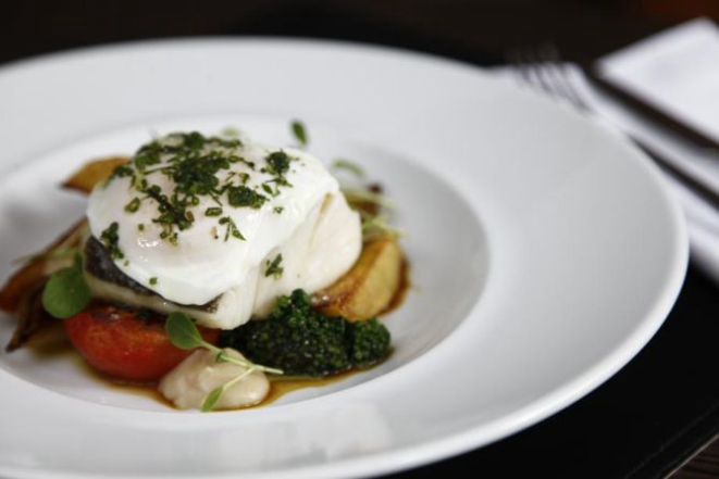 Bacalhau com musseline de bacon