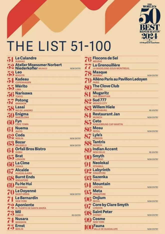 Em uma prévia que revelou as posições do 100º ao 51º lugar, o restaurante carioca Lasai garantiu a 58ª posição. O reconhecimento internacional chega logo após a conquista da segunda estrela Michelin, anunciada nesta semana.