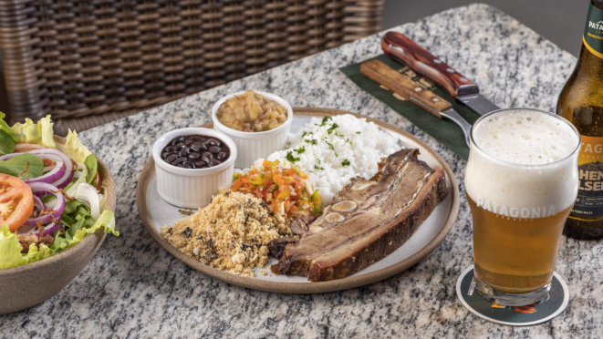 Por lá, o cliente pode pedir um prato feito com costela, arroz, feijão, farofa e demais acompanhamentos tradicionais. Ou pode apostar em algumas novidades dos cardápios, como os sanduíches e as cumbucas de salada, tudo preparado com o carro chefe da casa: a costela. Para acompanhar, claro, por uma boa caneca de chope. O Rosa Brasil Já! também atende no delivery. A entrega vai das 10h às 22h todos os dias. Pedidos apenas pelo iFood.
