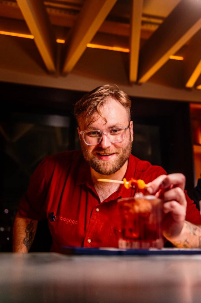 Com 29 anos de idade, Gabriel Bueno também se destaca no cenário da coquetelaria curitibana. Com mais de 10 anos de experiências e passagens pelo Ponto Gin e pelos atuais La Boca e Céu, ostenta o título de finalista de duas edições do World Class Brasil, maior competição de coquetelaria do mundo, ficando entre os 20 melhores do país, em 2024.