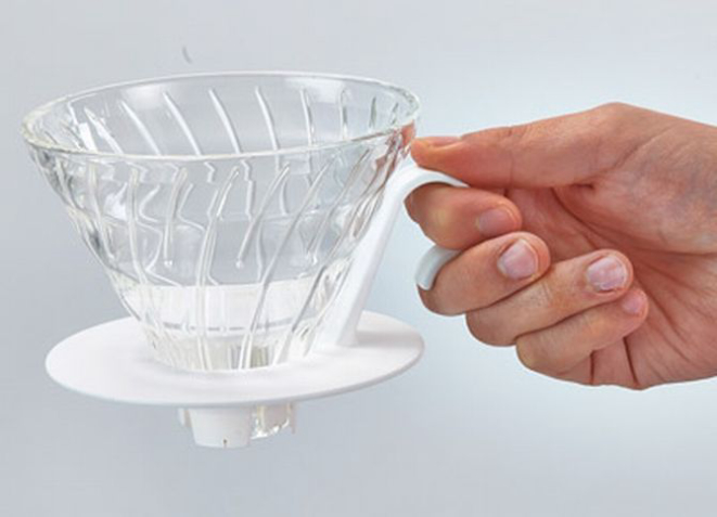 Criação da japonesa Hario, que foi fundada em 1921, parece um porta filtro tradicional, mas não se engane. Há ranhuras em espiral nas laterais e o orifício por onde passa o café é bem maior do que em outros porta filtros, por onde a água passa mais rápido. O filtro é totalmente cônico e com papel mais poroso. Pode ser em cerâmica, vidro ou acrílico.