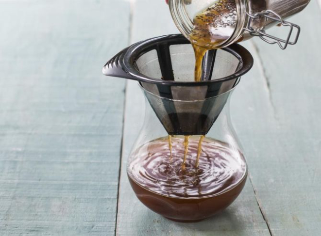 3. Coe a quantidade de líquido que vai usar. O cold brew pode ser bebido puro ou em drinks e cafés com leite.
