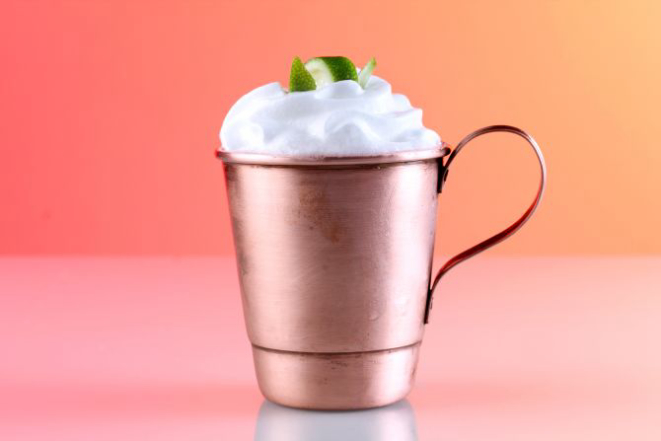 Gim infusionado no gengibre, refrigerante de gengibre, limão taiti e espuma de gengibre com limão