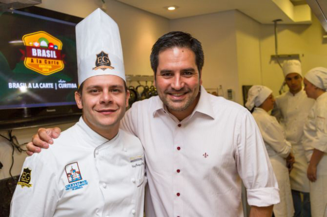 Rodrigo do Prado, sócio-proprietário do Espaço Gourmet, e Leonardo Dal Farra, da agência OC, comemoram a parceria para a realização do Brasil a La Carte, um evento que será realizado entre os dias 28 e 30 deste mês. A feira, no ExpoRenaultBarigüi, terá aulas de gastronomia, expositores do segmento e área de refeições.