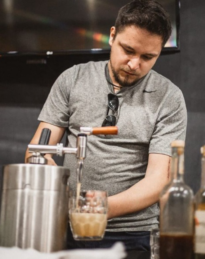 “Hoje crio bebidas que de alguma forma tem uma conexão com o ambiente, local e cultura de Minas Gerais. Na época em que comecei, já conhecia alguns drinks que utilizavam da bebida na composição, mas sem me saltar os olhos. Depois que comecei a trabalhar efetivamente com o café que pude compreender como em muitas ocasiões é o café que dá o direcionamento criativo de sabores para a construção do drink”, conta o barista.