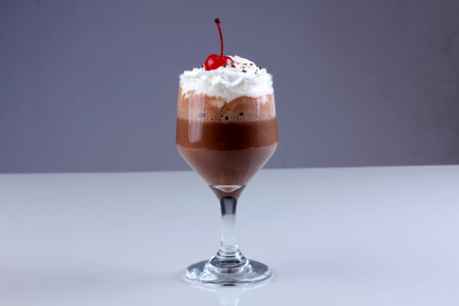 Chocolate quente, conhaque, Baileys, chantili e cereja