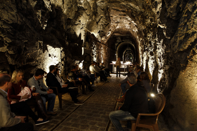 O túnel ferroviário, construído em 1885 e desativado em 1969, tem até hoje as marcas da Maria Fumaça na parte de cima – mais do que uma ótima atmosfera para envelhecimento de espumantes, o local faz parte da história paranaense. São 429 metros de comprimento, 5 metros de altura e 3,5 metros de largura. E o mais importante: lá dentro a temperatura é sempre constante, 16 ou 17 graus, e a umidade relativa do ar fica sempre em torno de 90%, que é justamente necessário para a maturação das bebidas.