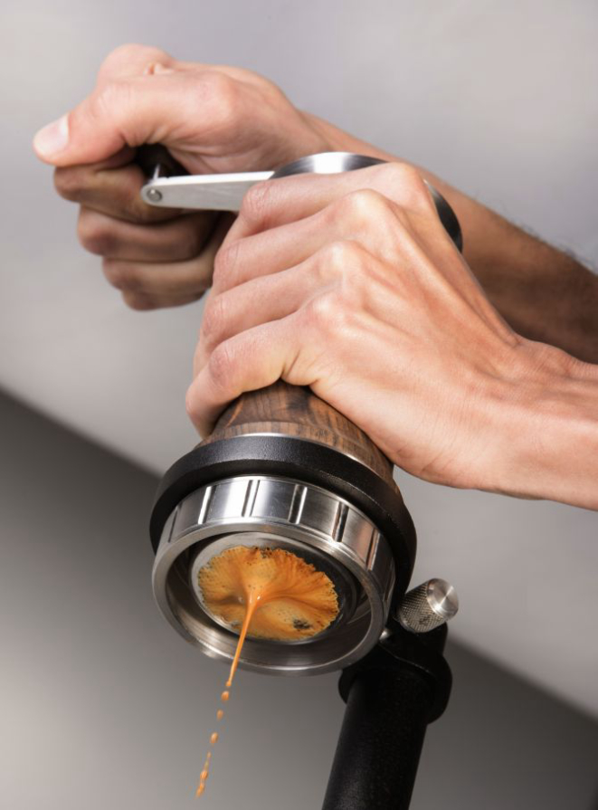Na prática, você coloca o café compactado na cafeteira, a água quente (ou fria, no caso do cold brew) e gira a manivela no sentido anti-horário para subir o pistão. Para fazer o café, basta girar no sentido horário. Neste momento, você define a pressão que quer empregar. Ela pode chegar a 14 bar. A título de comparação, uma máquina de extração de expresso chega a 9 bar. Além disso, ela aceita todos os tipos de moagem, ou seja, faz expresso, estilo french press e até o coado simples. São duas versões: a portátil e a com base em aço.