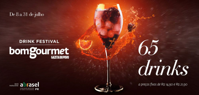 A primeira edição do Drink Festival Bom Gourmet é uma realização da Gazeta do Povo para apresentar as delícias da coquetelaria e valorizar os bares e profissionais do setor, oferecendo ao público drinks a preços promocionais de R$ 14,90 e R$ 21,90. Taxas de serviço são cobradas à parte.