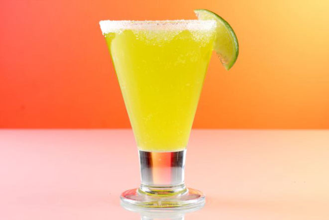 Absinto, licor de pêssego, suco de pêssego e água com gás