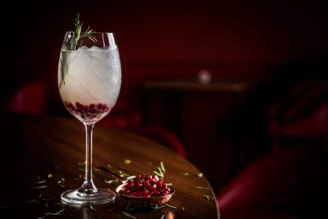 Para os que gostam de uma bebida mais forte, o Ginger Gin Tonic é uma boa opção. Diferente do Gin Tônica tradicional, feito com uma rodela de limão-siciliano, gelo, um terço do copo de gin e o restante preenchido com água tônica, esse drink especial adiciona a picância do gengibre e sementes de romã, uma das frutas da estação, o que confere uma coloração vermelha para combinar com o verde do alecrim. Além de ser uma opção refrescante para o verão, é um coquetel com a combinação de cores do Natal. “Fica super natalino, quase um enfeite na mesa”, destaca o bartender do Ginger Bar, Zé Baggio.