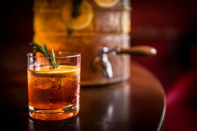 O Rosemary Punch segue a mesma característica dos drinks coletivos tradicionais. O Aperol, que é um aperitivo cítrico a base de laranja, misturado com o whiskey Bourbon, que é maturado em carvalho e traz