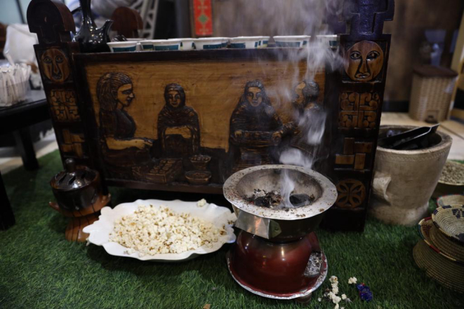 Atenção a alguns elementos peculiares, como as pipocas, por exemplo (diz a lenda que o café deve ser servido junto com alguma guloseima), que se juntam ao aroma do café e ao cheiro do incenso e tornam o sabor da bebida etíope inesquecível.