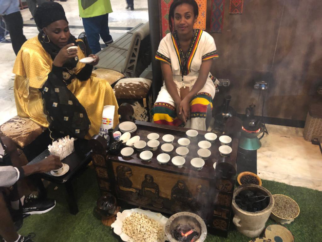 Responsável por seu preparo, a senhora do café veste trajes típicos – uma forma de destacar que apenas mulheres podem realizar o ritual. O perfume da torra do grão se une ao do incenso; juntos se espalham pelo ambiente – uma espécie de convite aos apreciadores dessa bebida responsável por uma produção mundial equivalente a mais de 167 milhões de sacas (dados de dezembro de 2018 da OIC – Organização Internacional do Café).