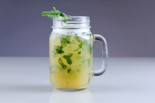 Tequila José Cuervo Ouro, Amaretto, suco de abacaxi e hortelã