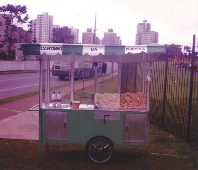 “Em 1993, minha mãe conseguiu uma licença para vender pipoca no Jardim Botânico”, recorda Luciana. O espaço, um dos símbolos da capital, havia sido inaugurado dois anos antes. O casal não tinha carro. Iam ao Botânico no Interbairros 2, com todo o material de preparação da pipoca no ônibus, mais Ithamar Júnior, o filho mais novo, à época bebê de colo. O casal não tinha com quem deixar o menino, e ele esperava pacientemente os pais trabalharem em um carrinho de bebê. O carrinho de pipoca ficava guardado em uma casa próxima ao jardim, a cerca de 500 metros. Ithamar, o pai, ia todos os dias até a casa, pegava o carrinho para o trabalho, ocupava seu espaço no portão de entrada, e retornava à residência para guarda-lo após o expediente.