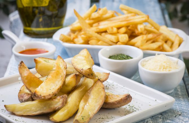 Mesmo fria – isso a equipe do Bom Gourmet constatou in loco –, a batata frita que a chef Angela Muraro prepara permanece crocante. O petisco não está no menu do La Rauxa Cafè i Bistrot, mas é algo que ela gosta de preparar em casa. “Para que fique sequinha e não murche, eu cozinho em água a batata Asterix (que retém menos água), cortada em palitos, até subir aquela espuma branca. Daí retiro e seco em papel toalha ou em um pano limpo”, ensina. Na sequência, ela frita as batatas em óleo a 180 graus C e seca novamente em papel toalha antes de servir. Outra maneira é pré-cozinhar as batatas em óleo a 140 graus C até elas ficarem esbranquiçadas. Este, relata a chef, é o mesmo processo pelo qual passam as batatas congeladas que compramos no supermercado. “Dá até para cozinhar em óleo ou água uma quantidade grande e congelar em porções menores para fritar outro dia. Para “ressuscitar” batatas frias que murcharam, cinco minutos no forno a 180 graus C resolvem, segundo a chef.