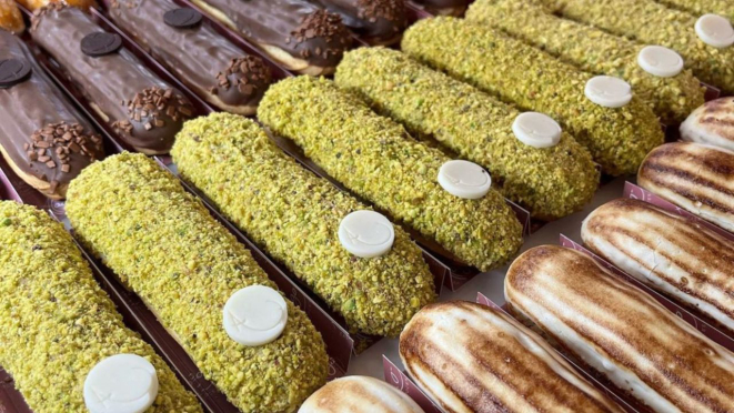 Completam as opções à base da oleaginosa o Paris-Brest de Pistache e Morango (massa choux com recheio de creme de pistache, morangos e creme fresco batido) e a Éclair de Pistache (massa choux recheada com creme de pistache, compota de framboesa e topping de chantilly de pistache).