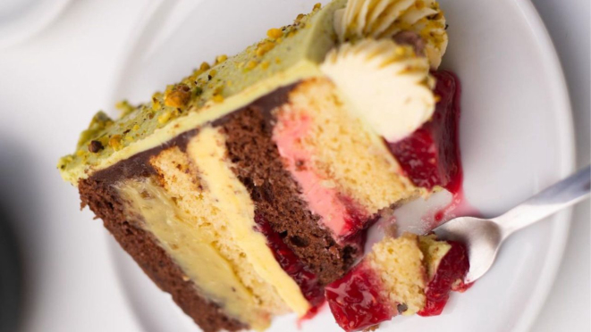 Segundo mais vendido da loja, em fatias ou inteiro, o Bolo Pistache & Framboesa leva massas de baunilha e chocolate, com recheios de creme de pistache, brigadeiro de crème brûlée, mousse de frutas vermelhas e compota de framboesa. Para os amantes da noz verde, a Délices oferece ainda a Tarte Pistache (base amanteigada, marroc de pistache, caramelo de pistache, chantilly artesanal de pistache e cobertura de chocolate branco com pistache).
