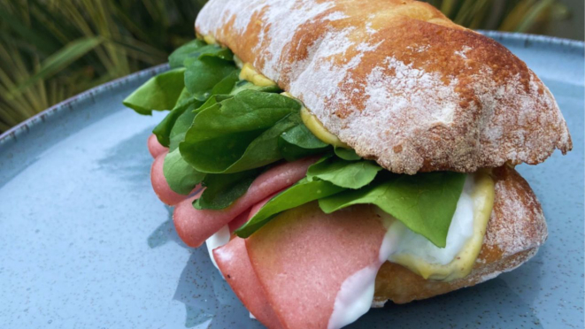 Servido em pão ciabatta levemente tostado, o Sanduba de Mortadela leva maionese de pistache, fatias de mortadela, folhas de rúcula, azeite de oliva, sal e raspas de limão siciliano. “É um casamento que ninguém espera, mas fica muito bom”, garante Anna.