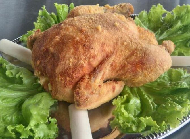 Frango assado à milanesa (R$ 27) servido aos domingos das 7h às 14h30.