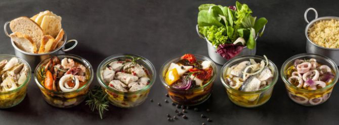 Carnes, frutos do mar e conservas