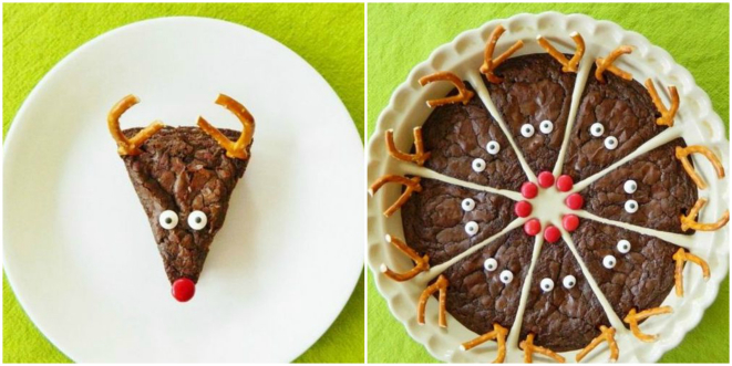Os marshmallows e brownies podem virar renas, com cobertura de chocolate, chifres de salgadinhos e confeitos para decorar.