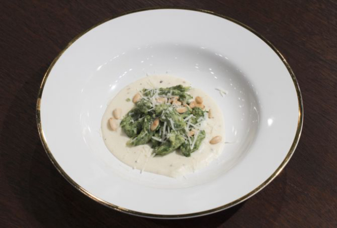 O competidor começou o preparo de um molho à base de leite, quando, provocado pela apresentadora Ana Paula Padrão, teve o clique: ferver o leite para talhar com vinagre e gotas de limão. Ele deixou a massa descansar sobre um tecido fino para que o soro pingasse e usou esse queijo fresco para a base do nhoque com agrião e espinafre. Todo o processo levou cerca de meia hora.