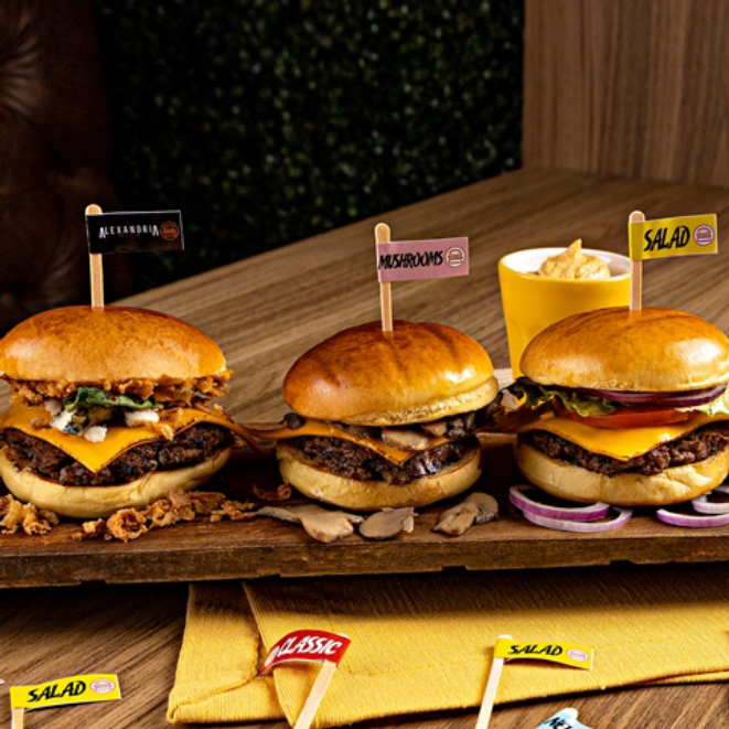 A Alexandria Burger Santa Felicidade oferece rodízio de mini smash burgers, a partir de R$ 54,90 o rodízio. Há também opções kids e a la carte no cardápio.