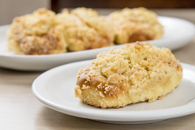 A receita da casa propõe ser a cópia fiel do Schneck (original do alemão) e o que mais surpreende é um único doce promover a mistura de sabores que combinam e conversam entre si. A massa fresca e macia é acompanhada de creme de baunilha, maçã, coco e passas. Uma delícia! a apresentação preserva o formato original do doce, parecido com um caracol. Preço: R$ 8