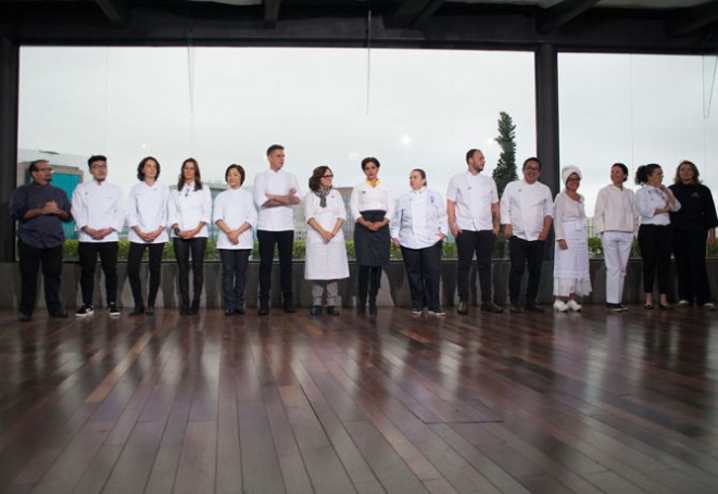A primeira prova da noite foi em equipe. Os cozinheiros tiveram que preparar um menu completo – entrada, prato principal e sobremesa – para um time de 15 chefs renomados do Brasil.