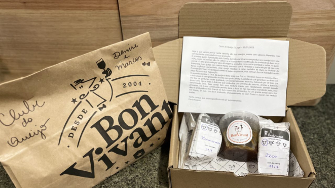 Criado pela empresária e queijista Flávia Rogoski, proprietária da loja Bom Vivant, no Mercado Municipal de Curitiba (PR), o clube “é um caminho para compartilhar oportunidades e sabores que ela descobre no mundo dos queijos”, informa. Assim, Flavia busca novidades com os produtores. Os assinantes recebem, na segunda e quarta semanas de cada mês, uma caixinha com dois queijos ‘garimpados’ entre produtores artesanais brasileiros, mais um item extra para ser consumido junto, que pode ser um pão, geleia ou embutido. A caixinha segue para o assinante com um volume em torno de 300 gramas de queijo e a surpresa. Contatos e mais informações pelo WhatsApp: 41 99673-7753.