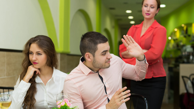 Não estale os dedos ou assobie para chamar o garçom ou a garçonete: simplesmente levante a mão ou olhe para eles. Os profissionais estão sempre atentos à atividade do salão, portanto não vão demorar a perceber quando estão sendo solicitados. No caso de garçonetes, não force intimidade chamando-as de coisas como “meu bem” ou “meu amor”, atitude inadequada em qualquer ambiente profissional. Da mesma forma, não é todo garçom que gosta de ser chamado por apelidos, tipo “comandante, capitão, tio, brother, camarada, chefia, amigão” – por melhor que seja a música “Saideira”, do Skank.