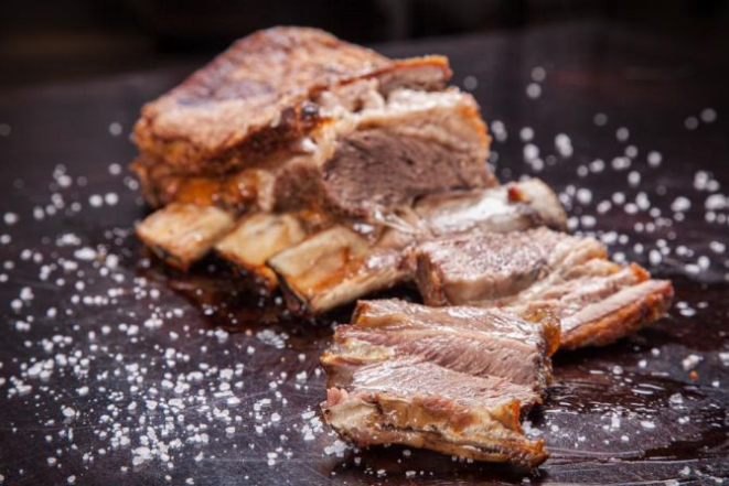 Também conhecida como costela janela, é a parte central da peça, retirada entre o 5º e 10º osso. “É a nata da costela: saborosa, carnuda e fácil de assar”, afirma o chef, que recomenda temperar com bastante sal grosso uns 10 minutos antes de ir para a grelha. A peça deve ficar a cerca de 70-90 cm de distância da brasa, em fogo médio, com os ossos para baixo. Demora de 2h30 a 3 horas para ficar pronta. No final, vire e dê uma tostada do outro lado por cerca de 20 minutos.