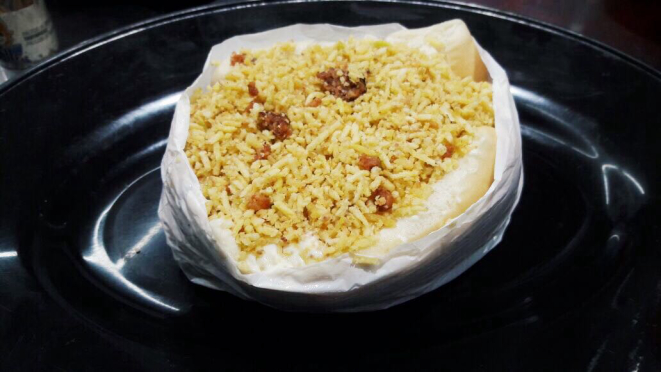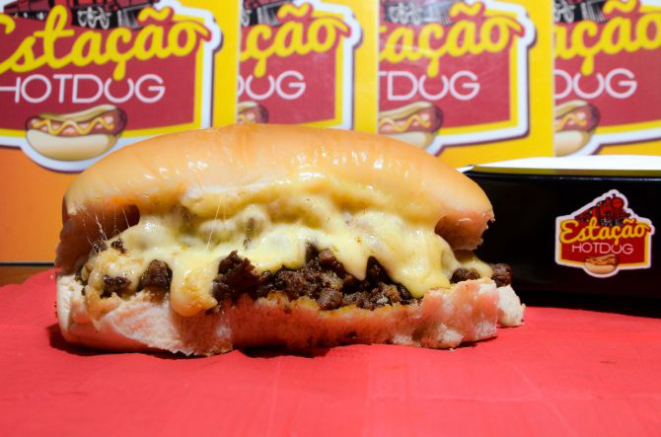 Pão de leite de 20 cm, maionese Hellmann’s, salsicha Perdigão, requeijão cremoso, tiras de alcatra, muçarela derretida e batata palha.