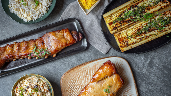 O Grés Gastronomia, restaurante de culinária contemporânea, oferece diversas opções de entradas, pratos principais, guarnições e sobremesas para montar sua ceia de natal. O cardápio conta com opções que vão das mais tradicionais, como o Salpicão de Frango defumado (500 g), por R$ 65, ou o Arroz com Amêndoas (500 g), R$ 49, até outras menos convencionais, como a Burrata com tomates e figo, por R$ 99, e a porção de homus de beterraba defumada (100 g), por R$19. A costelinha suína (1kg) sai por R$ 199, enquanto o lombo suíno assado (1 kg) custa R$ 189.