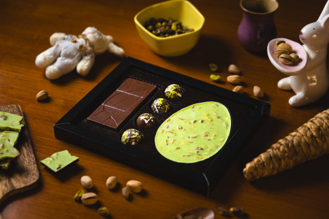 Para a Páscoa deste ano, preparou um catálogo com novidades artesanais, alguns deles com preço de fábrica. Entre os destaques estão o Ovo Doce Encanto, recheado com drageados crocantes, disponível nos sabores cereja, trufado ao leite, marula, crocante, dark e sortido (R$39,90; 200g); o Ovo Creme de Pistache (R$79,90; 300g), o Ovo Casca Trufada (R$79,90; 300g), e a Embalagem Sensação Pistache (R$59,90; 200g).