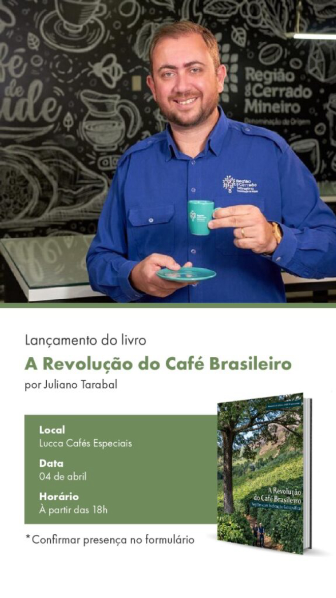 Juliano Tarabal, editor do livro "A Revolução do Café Brasileiro - Regiões com Indicação Geográfica" e Lucca Café Especiais promovem encontro para o lançamento da obra e uma conversa que celebra a diversidade e a qualidade do café brasileiro nesta sexta-feira, 04 de abril, às 18h.