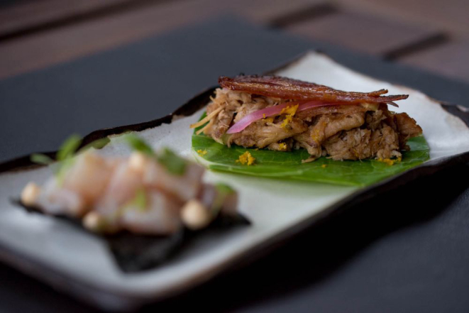 O restaurante HOG serve um menu especial na noite de segunda (2), com referências nipo-brasileiras. Será a partir das 18h30 e sai a R$ 39 por pessoa. O valor inclui um welcome drink com kiwi, canela e rum; duas entradas e dois pratos principais. A sequência começa com strudel salgado de tomate com ervas e queijo quark, segue com um sanduíche com carne suína empanada na farinha panko e frita, maionese de ora-pro-nóbis, pepino agridoce, molho sour e pimenta. Os principais são tiras crocantes de costelinha suína com melado de missô e um sanduíche de cordeiro com pesto de jambu, maionese de hortelã e vinagrete de abobrinha.