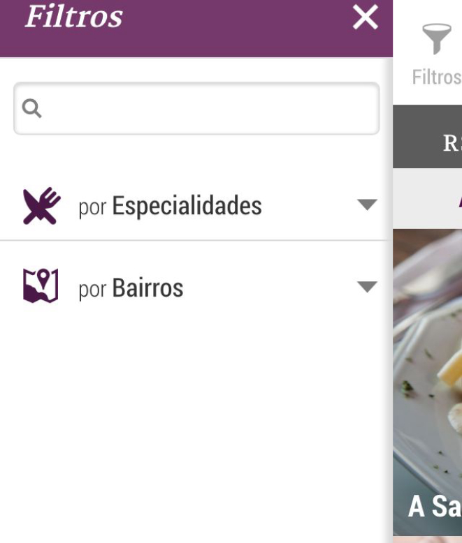 Outra opção para escolher o restaurante, é usar o filtro de busca por especialidades ou, ainda, por bairros.