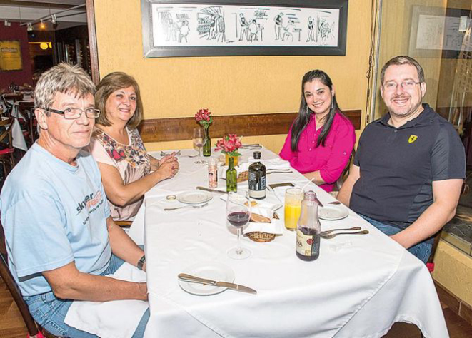 Maria Paula Motta, arquiteta; os estudantes Maria Isabella Zamberlan, Eduardo Macarini Mascarenhas, Gabriel Motto Zamberlan, André Macarini Mascarenhas, Alexandre Zamberlan Filho; Eduardo Mascarenhas, professor; Alexandre Zamberlan, engenheiro civil. Local: Restaurante Badida. Foto: Fred Kendi/Gazeta do PovoCarneiro Neto, colunista esportivo da Gazeta do Povo, no restaurante C La Vie. Foto: Fred Kendi/Gazeta do PovoNo Quintana: os consultores de tecnologia da informação Vanessa Motta, Neuza Cieszynski e Gabriela Duarte; a chef Gabriela Carvalho, do Quintana Café e Restaurante; Halanna Miranda e Elthon Tallevi. Foto: Fred Kendi/Gazeta do PovoNo C La Vie: o empresário uruguaio Fernando Cammarota, com as filhas Rosina e Lúcia; o empresário Celso Alves Mariano com Stephane Fillastre, da Federação Internacional de Automobilismo, e os empresários Rodrigo Lobo e César Bruns. Foto: Fred Kendi/Gazeta do PovoO executivo Michel Gelhorn e o gerente de marketing Demóstenes Albernaz com o filho Natan no Badida. Foto: Fred Kendi/Gazeta do PovoO casal Karen e Darlan Goinski no restaurante Vindouro. Foto: Fred Kendi/Gazeta do PovoA psicologa Aline Maciel e jornalista Juliana Pereira, no Bar do Pachá. Foto: Fred Kendi/Gazeta do PovoA administradora Elaine Peres e a enfermeira Cristiane Alves no Bar do Pachá. Foto: Fred Kendi/Gazeta do PovoNo Babilônia: os analistas de sistema José Márcio Lacerda, Luiz Rorato, Demetrios Santana, Alexandro Gaio, Danillo Caporal e Juliano Mazzetto. Foto: Fred Kendi/Gazeta do PovoNo Limoeiro, Marcos Damaceno Alves com os pais Marcus Torres Alves, gerente de RH e a designer Josiane Torres. Foto: Fred Kendi/Gazeta do PovoNo Vindouro: Osmar Li Camargo, analista de sistema, com a mulher Liane; a funcionária pública Elda Cristina Lopes e o advogado Fabiano Lopes. Foto: Fred Kendi/Gazeta do Povo