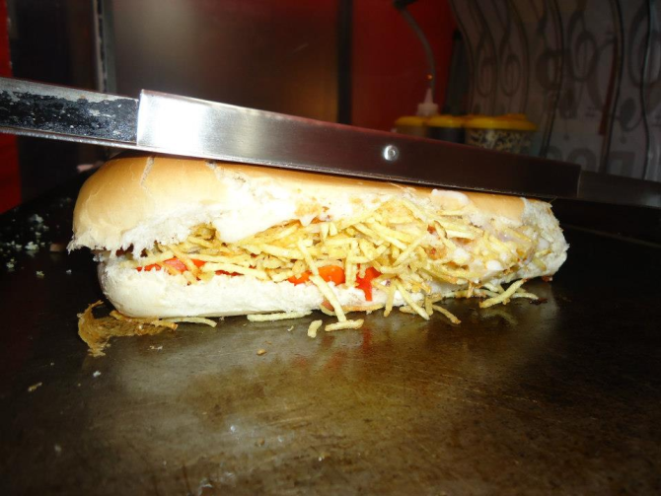 Um dos carros-chefes da casa é o cachorro-quente de estrogonofe, com pão, vina, estrogonofe, tomate, milho e batata palha, que custa a R$ 15.