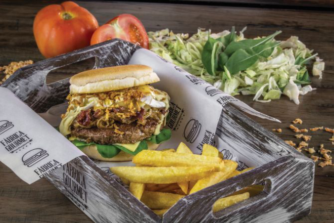 Daniel’s Burguer: kobe burger 180g, queijo brie, cebola de igreja chapeada, bacon pipoca, maionese bourbon, cebola crocante, rúcula ou alface americana no pão ciabatta rústico. Acompanha fritas da Fábrica