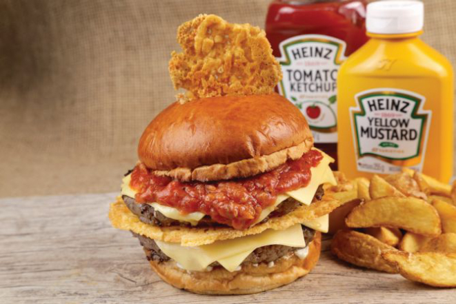 Le Pinguê Pepperoni: pão australiano, molho de tomate da Le Pinguê, hambúrguer de fraldinha, queijo muçarela e fatias de pepperoni. Acompanha batatas rústicas.