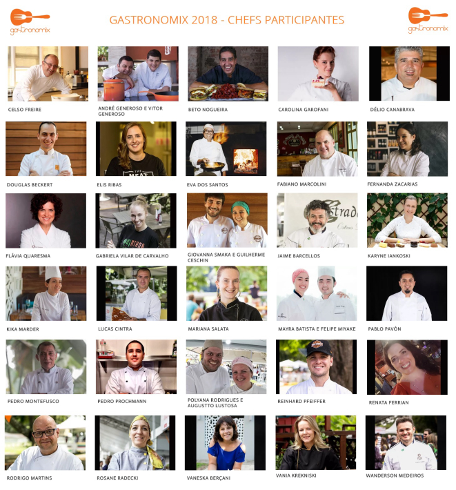 O Gastronomix também três chefs 5 Estrelas do Prêmio Bom Gourmet: Kika Marder, do Sel et Sucre, que vai servir um arroz de pato com cracóvia, redução de vinho do Porto e sálvia; Eva dos Santos, do Bistrô do Victor, com o arroz de siri; e Felipe Miyake, dupla da chef Mayra Batista, do La Varenne, farão um curry de legumes.