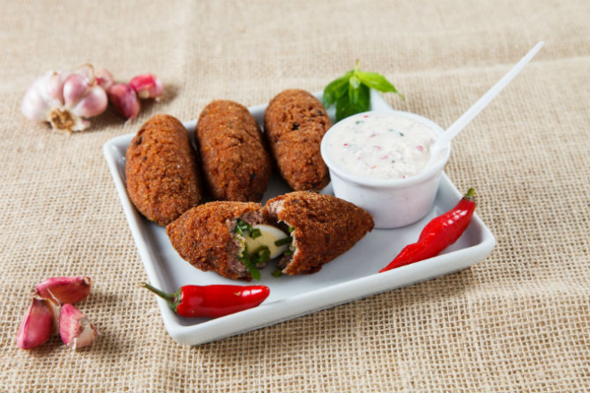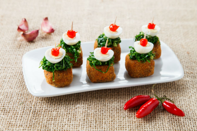 Quibe Up – porção de quibe frito turbinado com ovo de codorna.