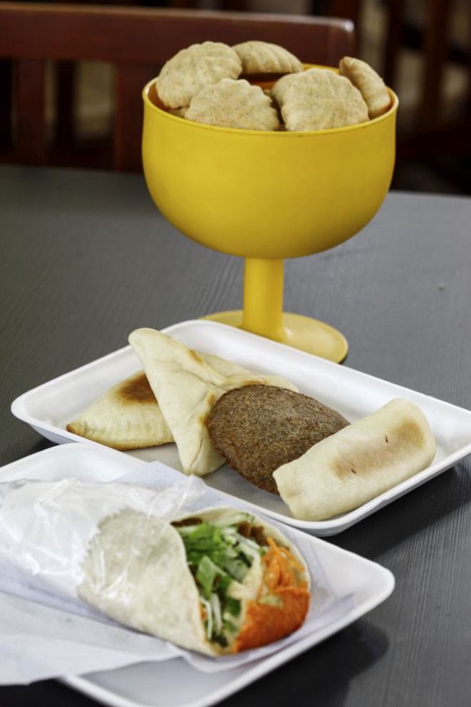 Uma família de refugiados sírios prepara quitutes da culinária árabe no estande. No menu tem falafel, shawarma, quibe, esfirra, doce sírio e pratos prontos para comer no local. Os preços variam de R$ 4 a R$ 12.