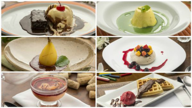 Para adoçar as refeições, eles escolheram doces à base de frutas como compotas, peras ao vinho, abacaxi grelhado e creme de papaia com licor de cassis e receitas deliciosas com doce de leite como crepes, churros, pudins, mil folhas e panna cotta.