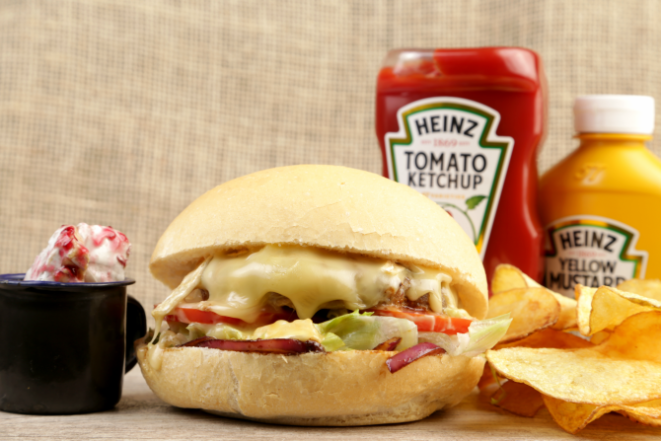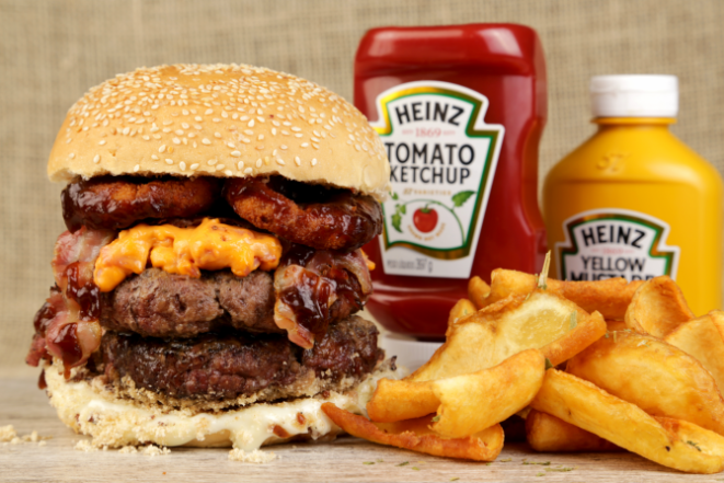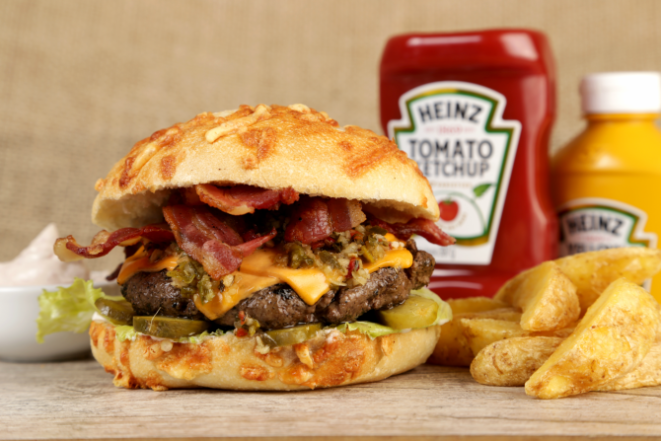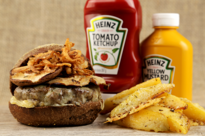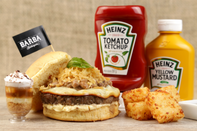 Pão de três queijos recheado com dois hambúrgueres de carne bovina, maionese Heinz, geleia de bacon, trifolati de cogumelos, queijo muçarela, tomate, cebola caramelizada e muito queijo. Acompanha uma dose de Jack Daniel‘s e um mini sonho recheado de Nutella com chantilly.