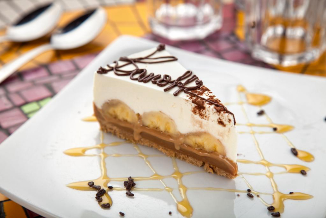 A casa oferece sua tradicional Torta Banoffi. A receita leva biscoitos, doce de leite, banana e nata. Servida no cardápio do almoço a R$ 39,90. Veja menu completo.